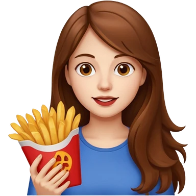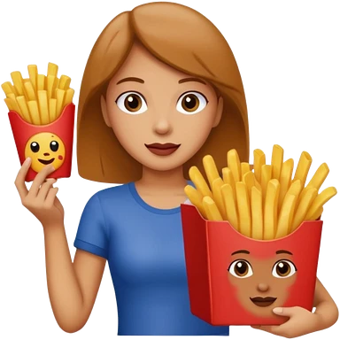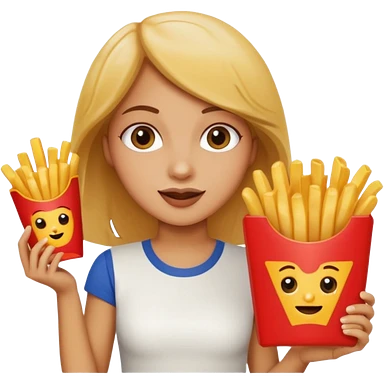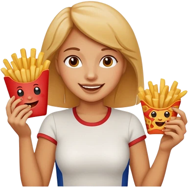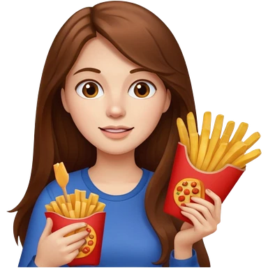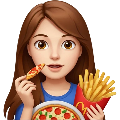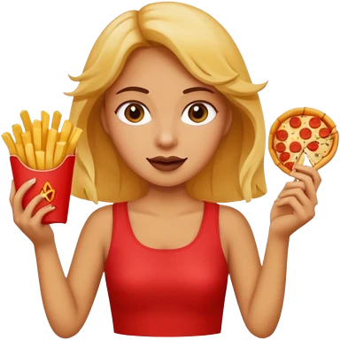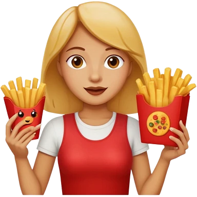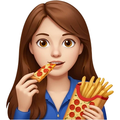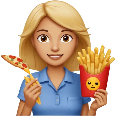 lean female with long hair holding fries and eating pizza emoji