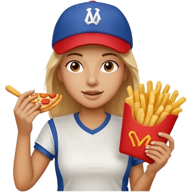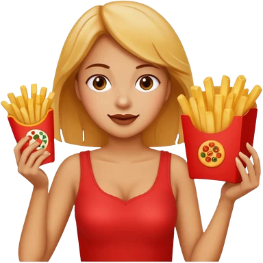 lean female holding fries on one hand and eating pizza on the other hand emoji