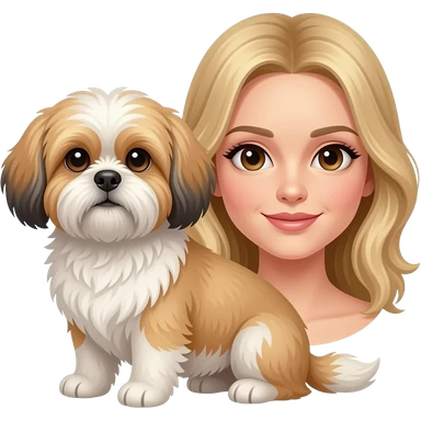 lhasa apso male dog and a blonde woman with brown eyes emoji