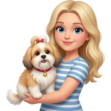 lhasa apso male dog being held by a blonde woman with brown eyes emoji | AI Emoji Generator
