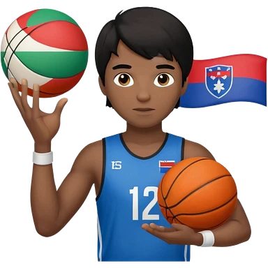 light black skin guy black hair in one hand basketball ball and in other 🇸🇮 emoji