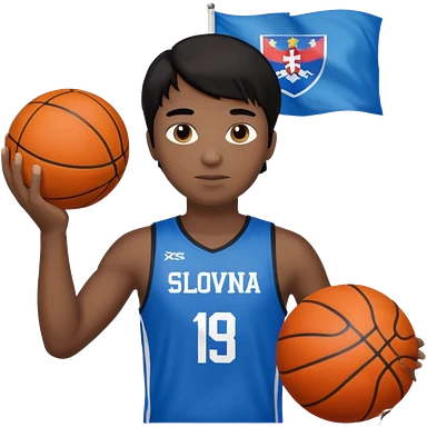 light black skin guy black hair in one hand basketball ball and in other Slovenia flag no this.. 🇸🇮 emoji