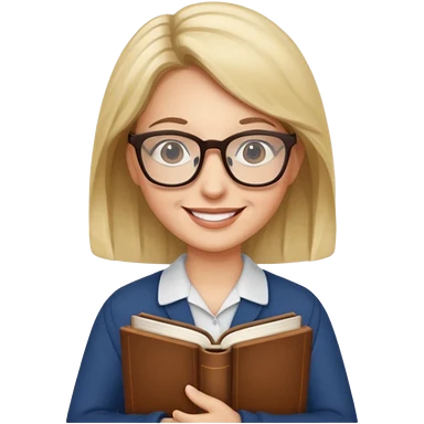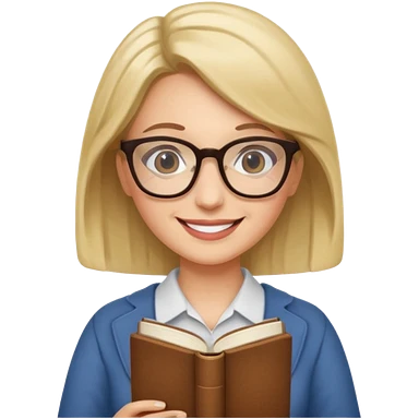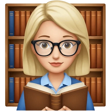 librarian teacher with short wavy blonde hair and green eyes emoji