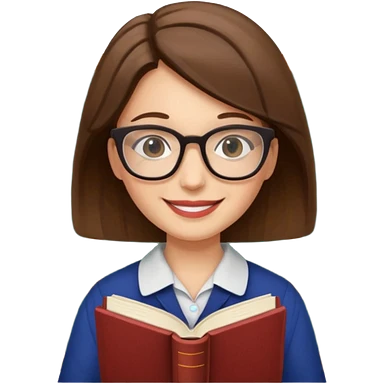 Librarian Style – neat bun, thin metal glasses, calm gentle smile. emoji