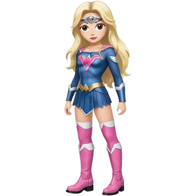 Wonderwoman, long blond hair with pink highlights, black-pink leather outfit, white knee high boots emoji