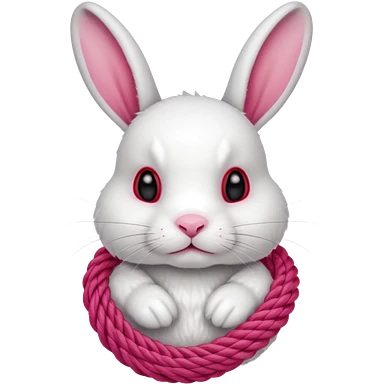 White realistic bunny with thick red ropes tightly wrapped around emoji