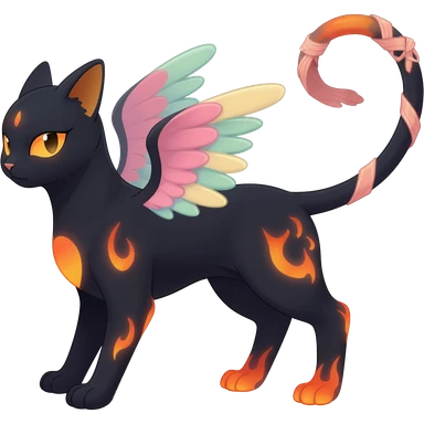 Feisty Spicy Fiery Angry Growling Sour Creamy Evil Liepard-Houndour-Sprigatito-Litten-Pokémon-fusion-creature (full body) emoji