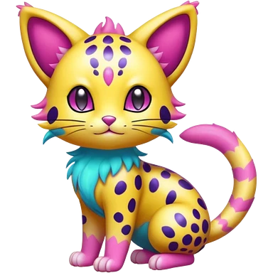 Colorful Shiny Neon-colored Unqiue cute Adorable furry Liepard-Skitty-Delcatty-Pokémon-Fakémon-hybrid-creature (full body) emoji
