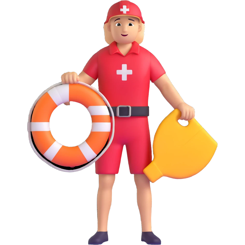 lifeguard with rescue buoy on beach emoji | AI Emoji Generator
