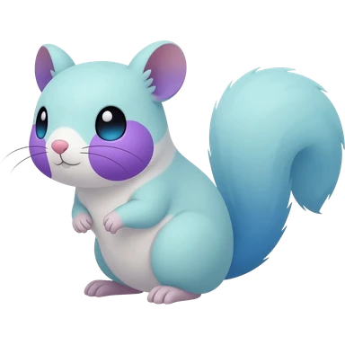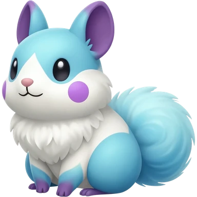 Light-pastel-Cyan-white-blue-gradients electric type rodent-chinchilla-squirrel-gerbil-jerboa-Pachirisu-Minccino-Pokémon-Fakémon-fusion-hybrid-Pokémon-animal-creature, full body with purple-violet-pinkish round cheek markings emoji