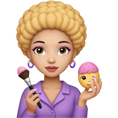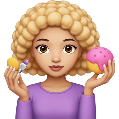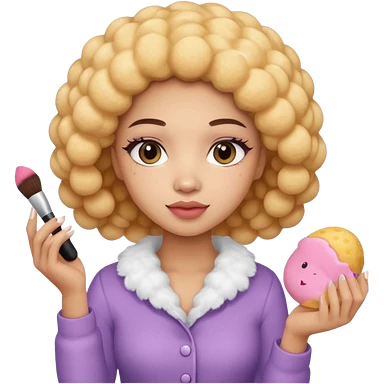 Light skin female holding makeup fluffy sponge in left hand emoji