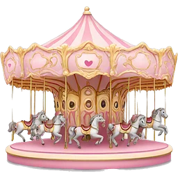 A colorful, whimsical carousel with ornate wooden horses, spinning gracefully under glowing lights. The horses are decorated with vibrant colors, and the surrounding area is filled with twinkling lights, creating a nostalgic and magical atmosphere emoji