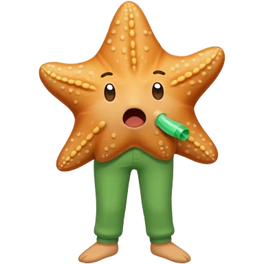 Give me a picture of an animated talking starfish that coughs, give me him green pants emoji