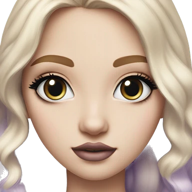 Create emojis like apple, Light girl with a blue iris, big eyes, light blond hair, pale skin, like a porcelain doll, medium nose, thick eyebrows, small lips Makeup, eye makeup with colored eyeliner - purple Long black eyelashes emoji