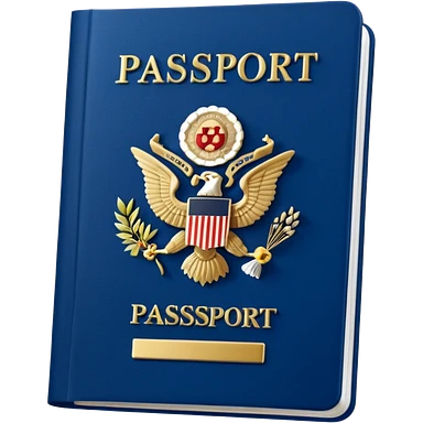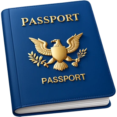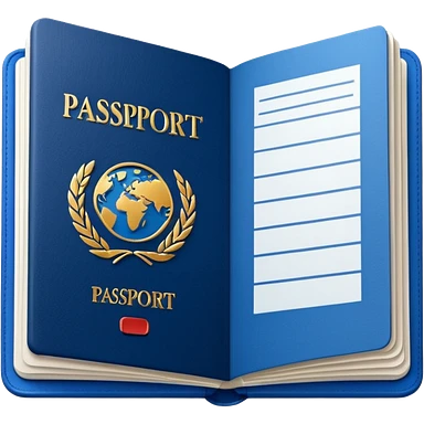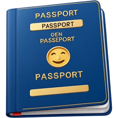 open white passport with embedded airline tickets, dark green details on tickets and passport, emoji style emoji
