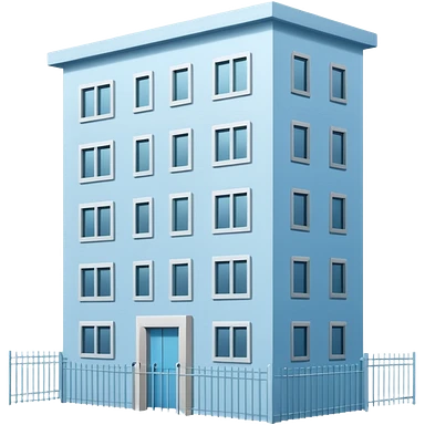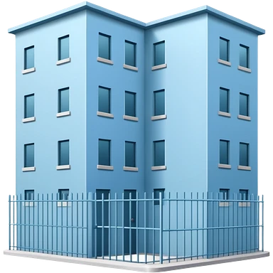 light blue rectangular 9-story apartment building surrounded by fence, closed courtyard, minimal flat vector icon, friendly clean design emoji | AI Emoji Generator