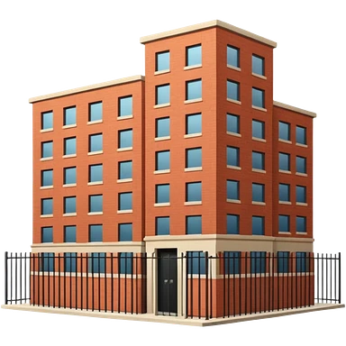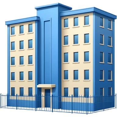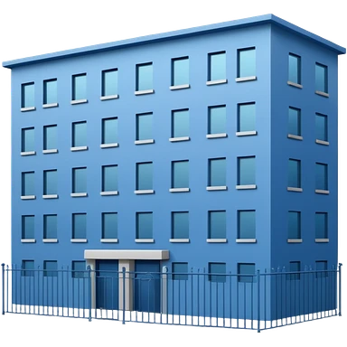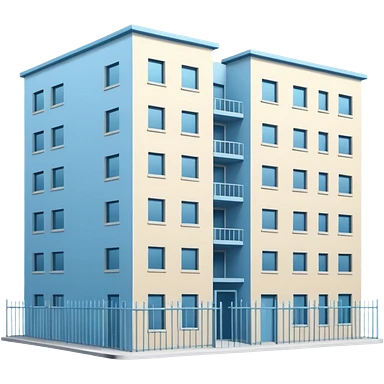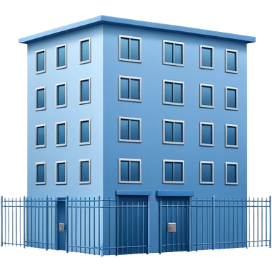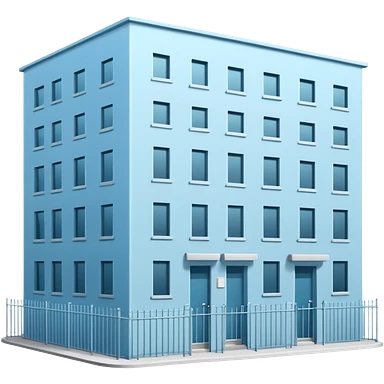 light blue rectangular 9-story apartment building surrounded by fence, closed courtyard, minimal flat vector icon, friendly clean design emoji | AI Emoji Generator