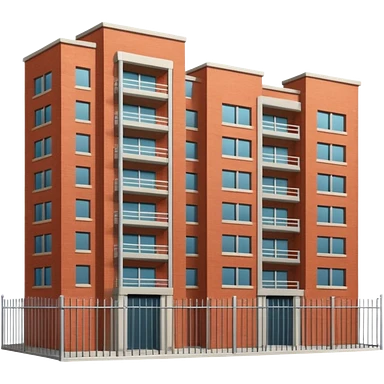 9-story apartment building surrounded by fence, closed courtyard, minimal flat vector icon emoji