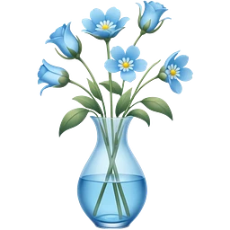 old blue book with light blue flowers in a glass vase and a writing quill, clean and minimal style, iOS emoji emoji