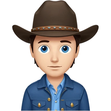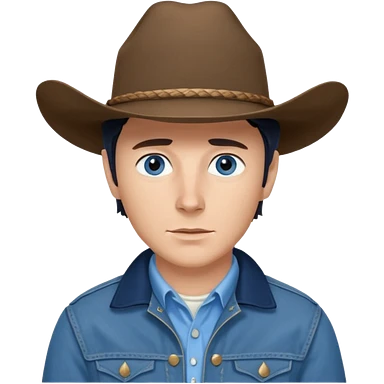Jack Twist from Brokeback Mountain with blue eyes, dark brown hair, light blue shirt, navy blue jacket and cowboy hat emoji