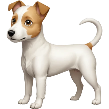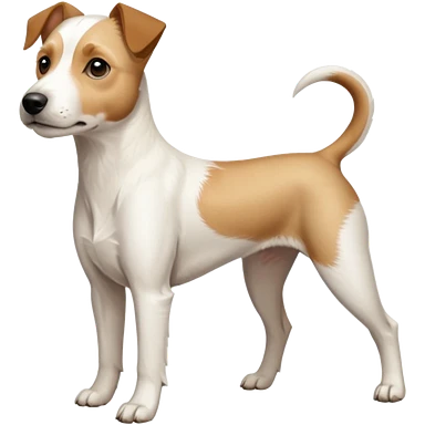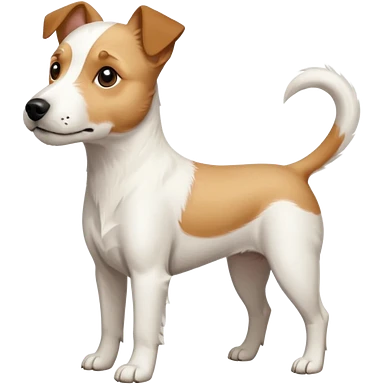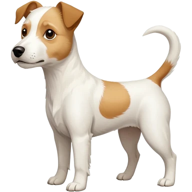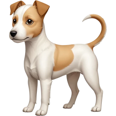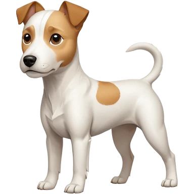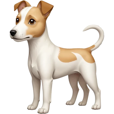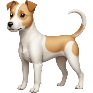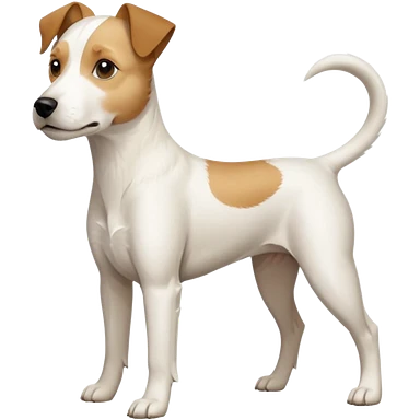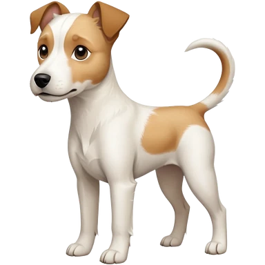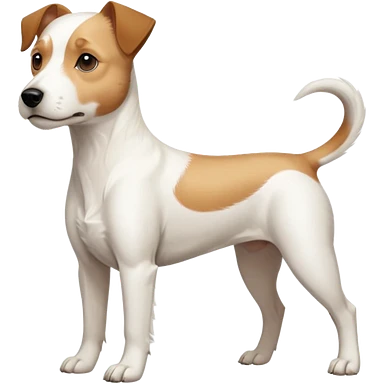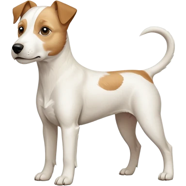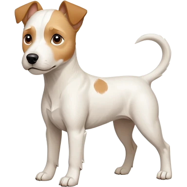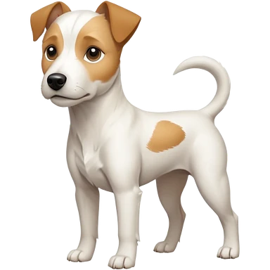a full body buff white parson russell terrier looking dog the size of a kelpie with light brown long ears and a light brown patch on one eye and a large snout. the rest of the dog is completely white. forward facing emoji