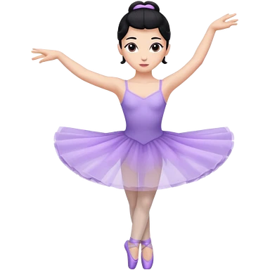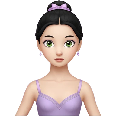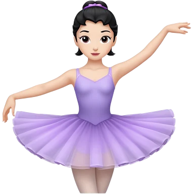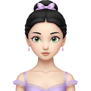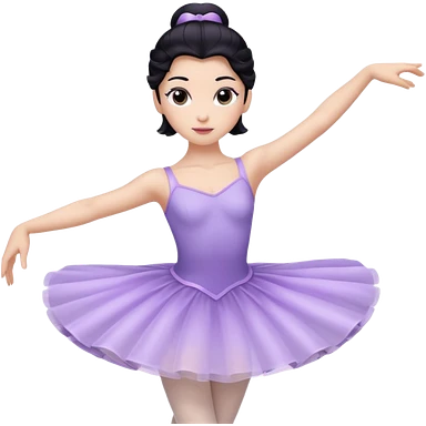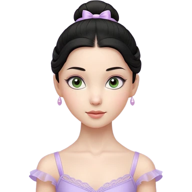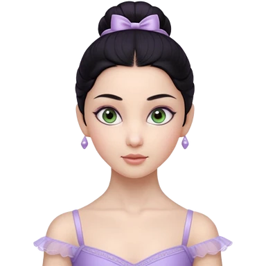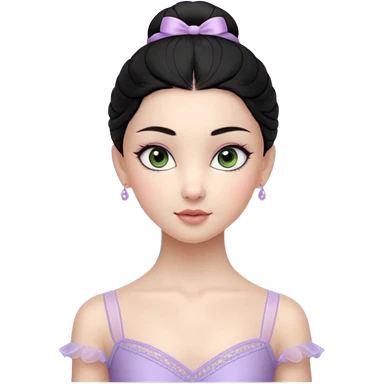 Cinematic Light Purple Ballerina Portrait Emoji, rendered in a realistic, vector-style with minimal shading. with porcelain skin, smooth deep black hair falling in soft waves, and calm, inviting eyes. emoji