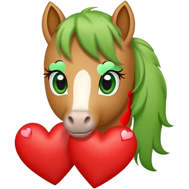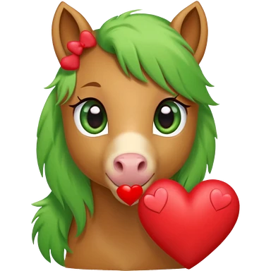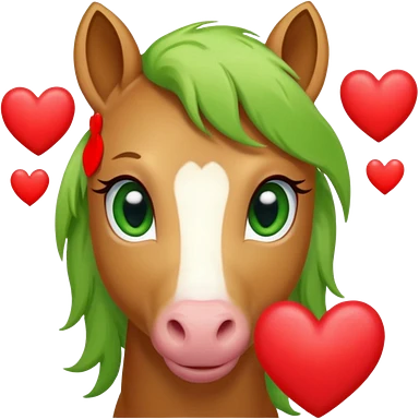 light brown pony with green eyes in love surrounded by heart emoji | AI Emoji Generator