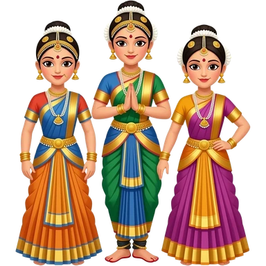 Light brown skin girl in a bharatnataym dress with actual bharatnatayam pose full body in aramundi emoji