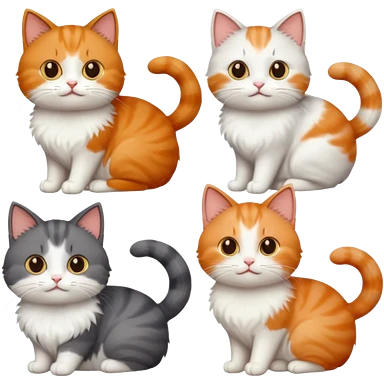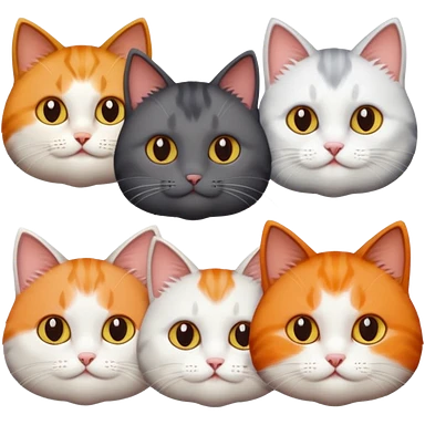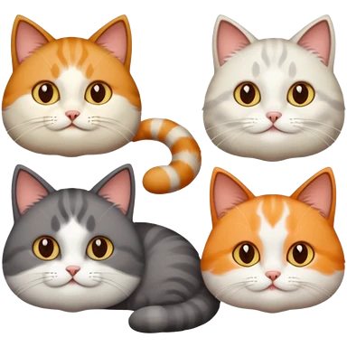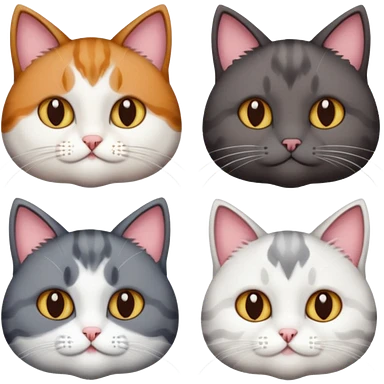 4 different coloured short haired cats including; a dark brown t and white cat, and a dark grey and white emoji