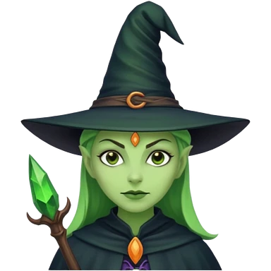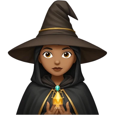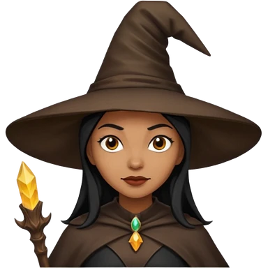 witch with short black hair, a witch hat, fair skin and brown eyes emoji