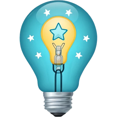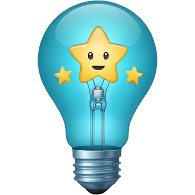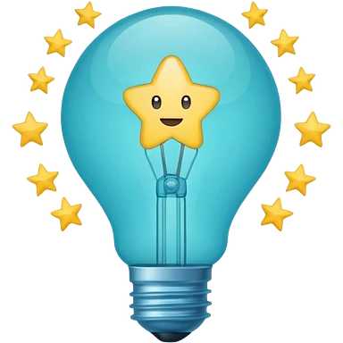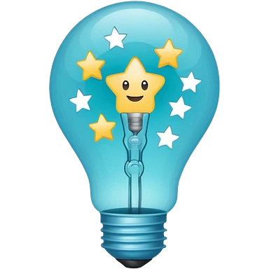 Light bulb icon with three small stars inside the bulb, flat emoji style, outline with blue and turquoise colors, white background emoji