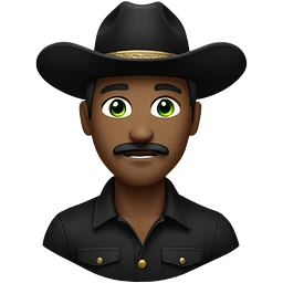 Light complected, black beard man with a black mustache, green eyes and wearing cowboy hat emoji | AI Emoji Generator