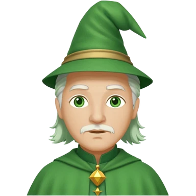 The Wizard from the Wizard of Oz with light skin, green eyes, white hair, green outfit emoji
