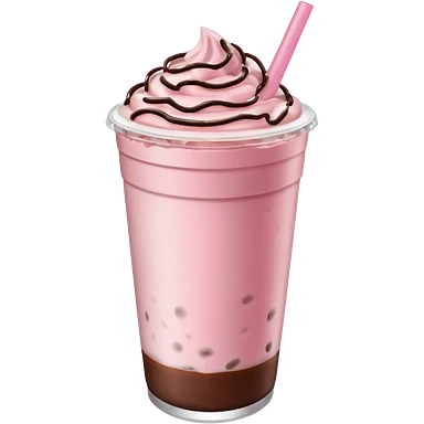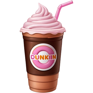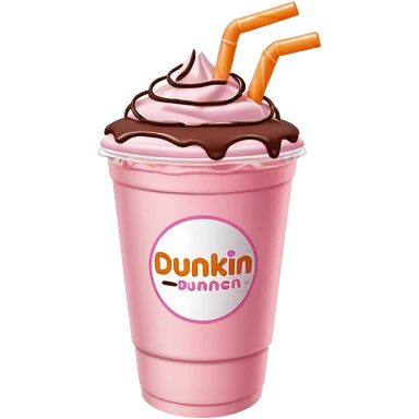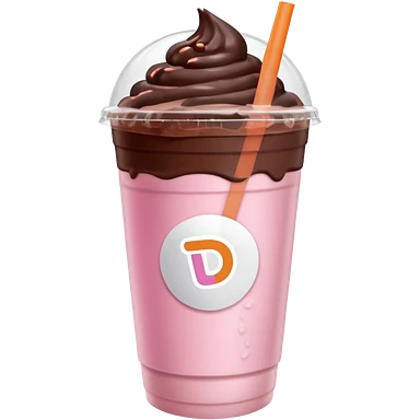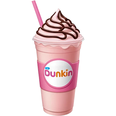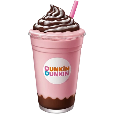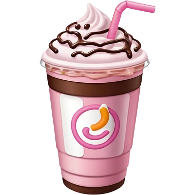 Light pink Dunkin refresher with chocolate cold foam melting into drink emoji