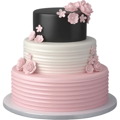 White 3 layer cake with light pink and pastel blue colored flower decorations emoji