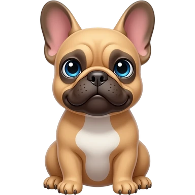 “Emoji style French Bulldog (not a generic dog). Light brown/fawn color, blue eyes, small white chest patch. Big upright bat ears, flat short snout. Sitting, looking up, cute expression. Keep exact face from photo. Clean emoji style, rounded shapes, simple background.” emoji