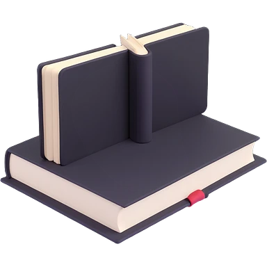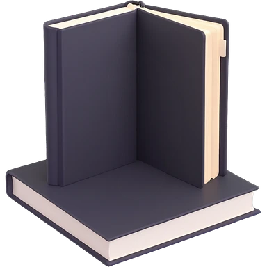 3D book emoji, blue and purple cover with a glossy finish, rounded corners, floating at an angle, soft shadow, kawaii face, vibrant colors, smooth and playful, minimalist, isometric, thick pages on side, transparent background, Icons8 3D style emoji