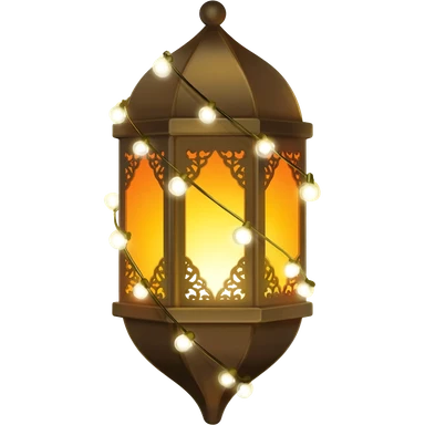 A beautifully warm and inviting Ramadan-inspired setting. A glowing ornate lantern sits on a wooden table, casting intricate patterns of light. Beside it, a decorative bowl filled with dates symbolizes hospitality and tradition. emoji