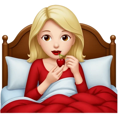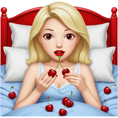 Woman eating cherries in bed emoji