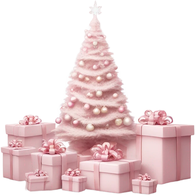 Light pink Christmas gifts under a white Christmas tree emoji | AI Emoji Generator