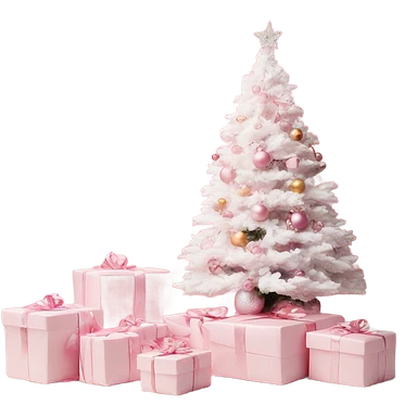 Light pink Christmas gifts under a white Christmas tree emoji | AI Emoji Generator
