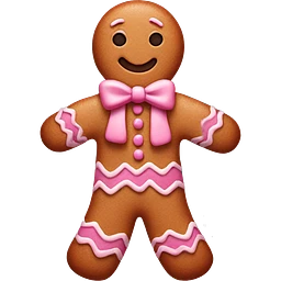 Gingerbread man light brown with pink bow and pink candy cane emoji