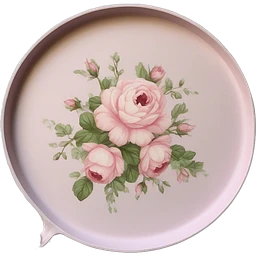 Light pink glass serving tray with handles, shabby chic style with floral print, with porcelain tea set on it emoji | AI Emoji Generator