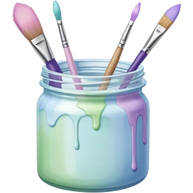 Watercolor paint jar of light blue, light pink, light green and light purple brushes emoji