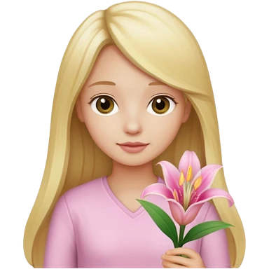 light pink lilium with a girl with blond long hair and clean girl make up emoji | AI Emoji Generator