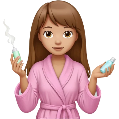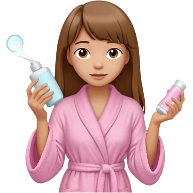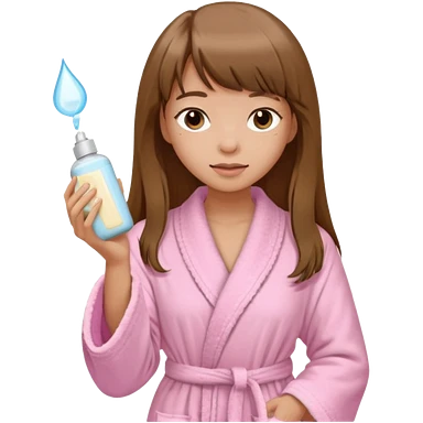 a girl with light skin and medium brown long hair with bangs who is applying lotion to her body show her whole body in a light pink bathrobe emoji