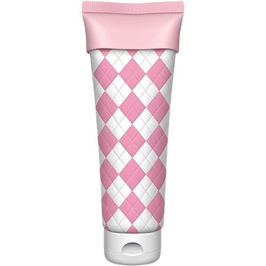 Light pink and white argyle printed lotion tube with pink cap emoji