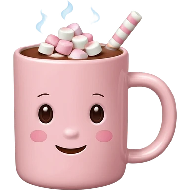 hot chocolate + marshmallows + pink mug emoji