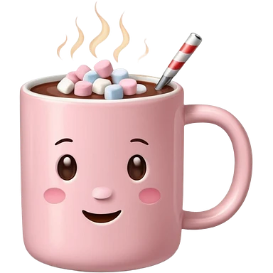light pink mug with hot chocolate and marshmallows emoji | AI Emoji Generator