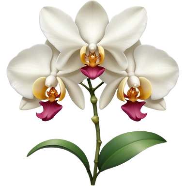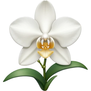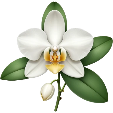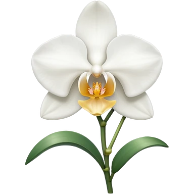 classic white orchid with yellowish core with buds and leaves emoji